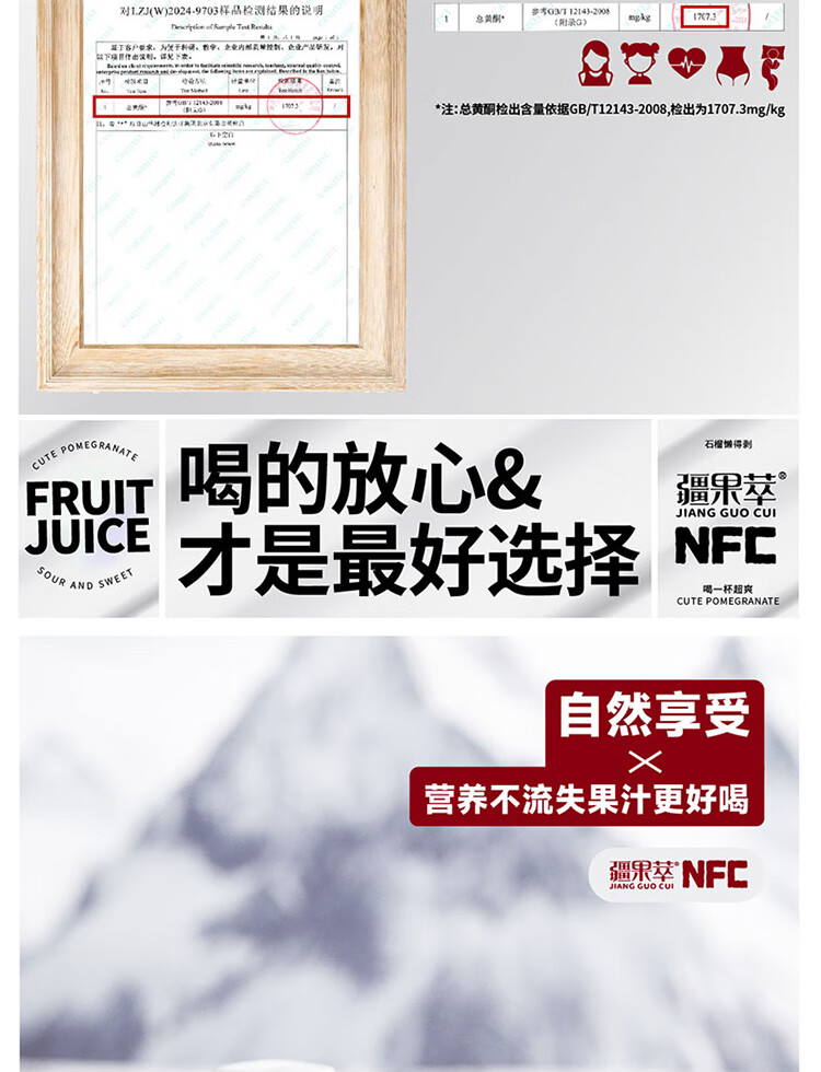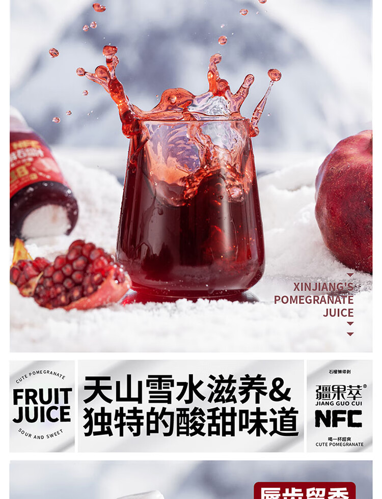 (1)温带大陆性干旱气候 (2)极致光热+ 昼夜温差,成就独特风味 (3)雪山纯净水质+沙质壤土,保障瓜果品质 (4)干旱虫害少+生态隔离性+少农残留+无工业污染,成就无添加、天然纯净NFC果汁